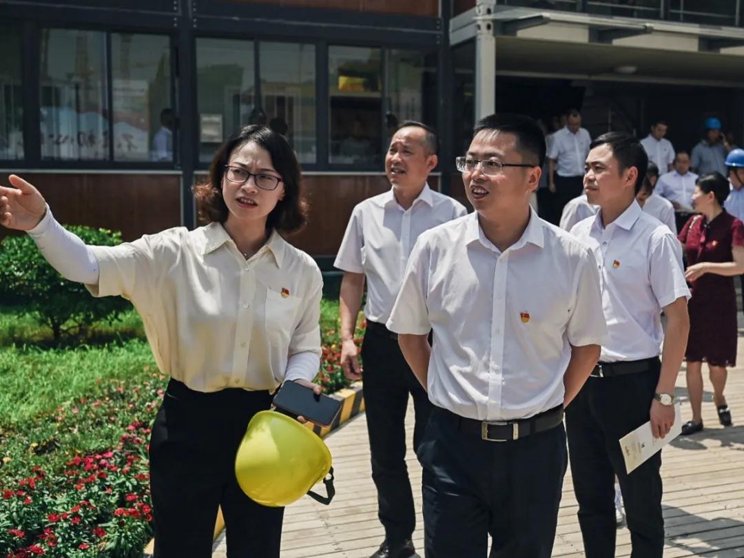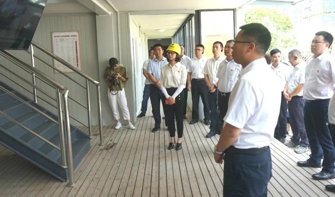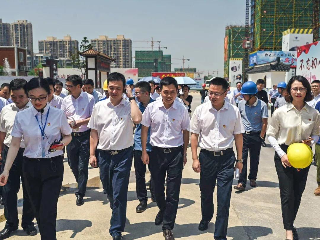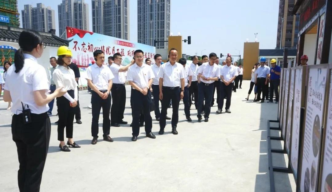 6月30日下午, 市委組織部副部長沈秋,市委組織部部務(wù)會(huì)議成員、市委兩新工委專職副書記鄒冬輝,市建設(shè)局黨委委員、副局長陳明法及各區(qū)縣有關(guān)領(lǐng)導(dǎo)50余人首站來到市北32號(hào)地塊,實(shí)地考察“紅色工地”建設(shè)情況。