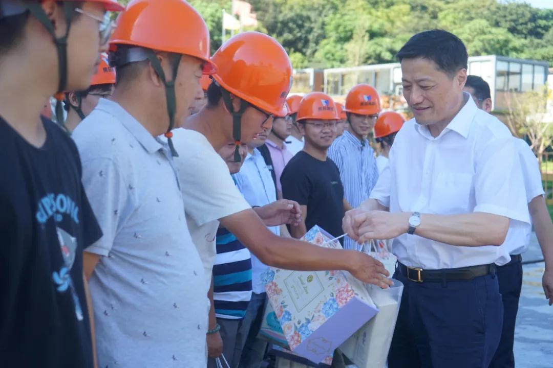 8月12日上午,集團(tuán)黨委書記、董事長周建新,黨委委員、副總經(jīng)理章健赴公司承建的壟上花苑施工現(xiàn)場,向堅守崗位的建設(shè)者送去關(guān)心和慰問,公司領(lǐng)導(dǎo)陪同前往。